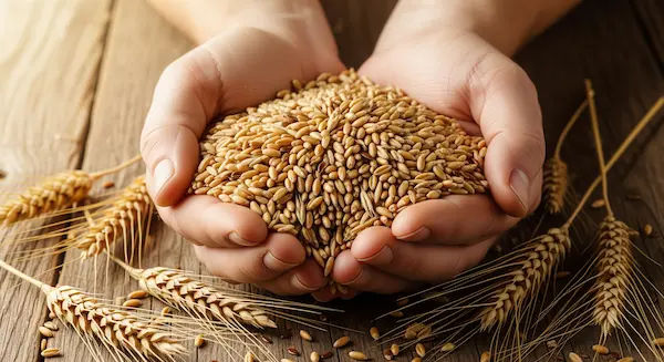 Whole grains include wheat, brown rice, barley, quinoa, and oats.